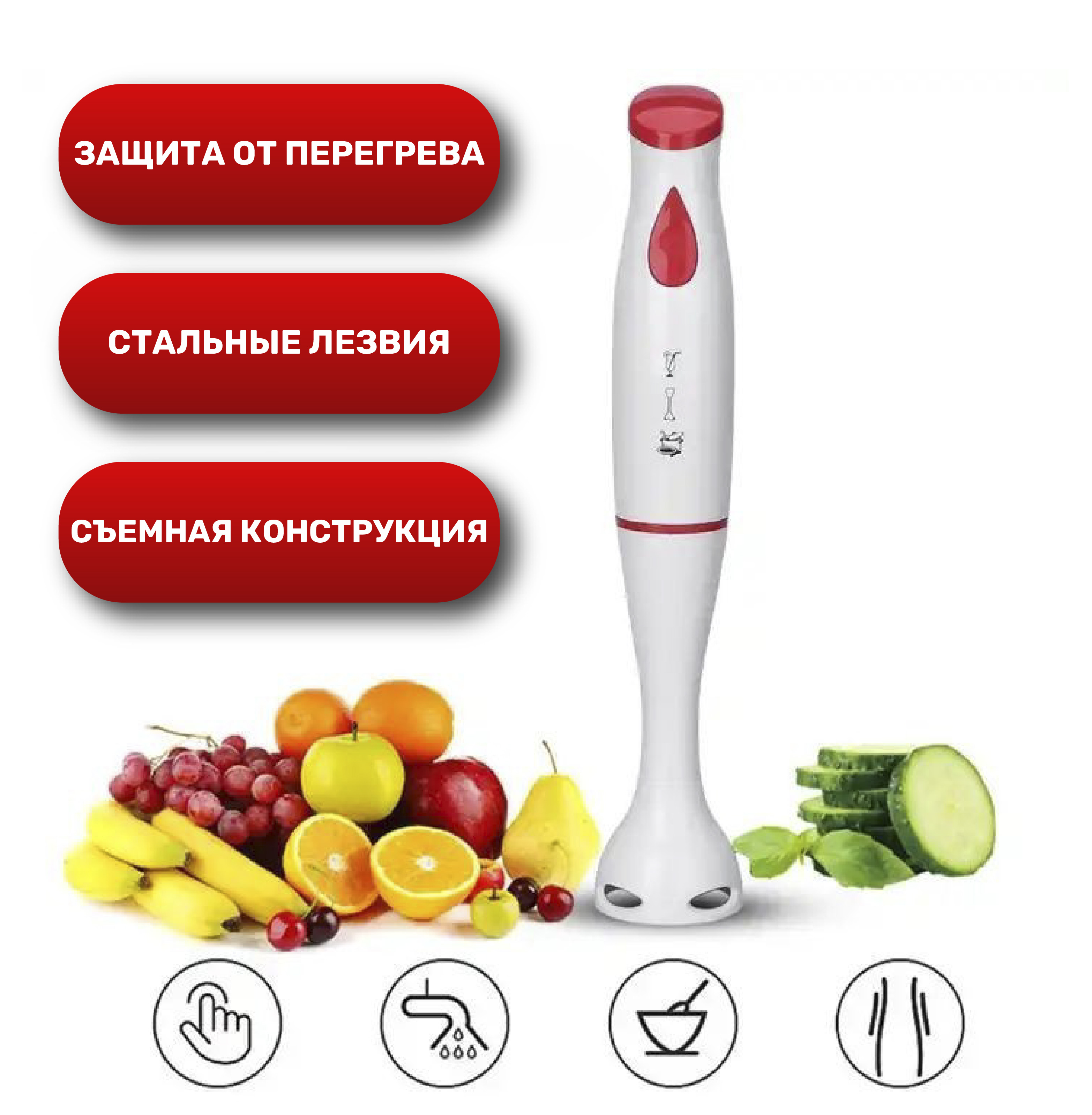 Погружной блендер легко и быстро приготовит ваши любимые блюда. Удобный в использовании: для смешивания и пюрирования. Небольшой вес прибора позволит Вам работать в удовольствие.Инновационная форма ножки блендера предохраняет от разбрызгивания. Благодаря разборной конструкции его легко чистить,ножку блендера можно мыть в посудомоечной машине.